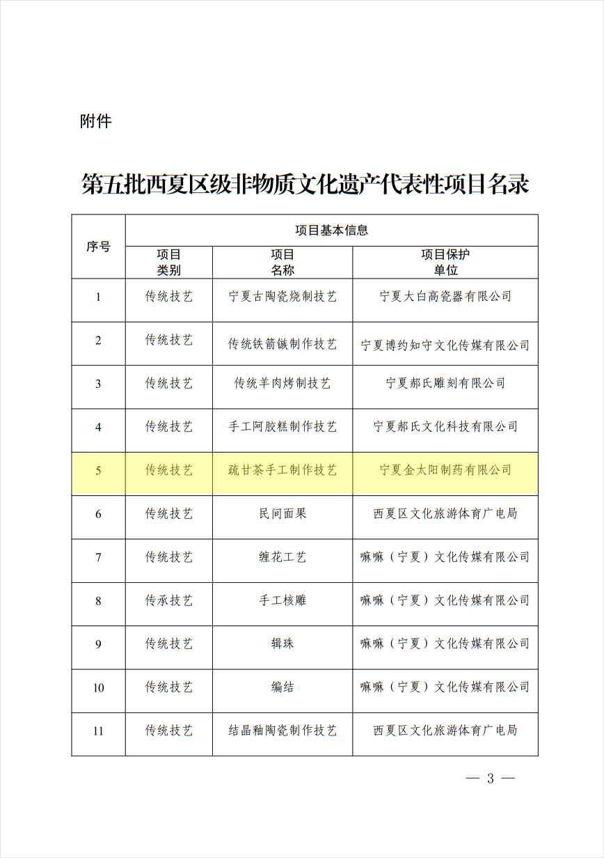 妻社 出品的“疏甘茶”,其手工制作技艺经银川市西夏区人民政府、银川市西夏区文化旅游体育广电局评审,被列入第五批西夏区级非物质文化遗产代表性项目名录。