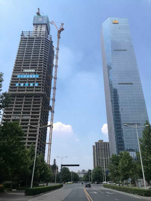项目自开工以来创下了9项陕西之最:14天绑扎1200吨钢筋;使用臂长65米混凝土泵车不间断浇筑36小时塔楼筏板最厚处达8.8米;单体建筑地基筏板混凝土用量最多、钢筋绑扎工时最短等。同时产生并推广先进技术和新工艺30多项:包括钢管混凝土柱顶升法、STL1000C内爬动臂塔吊、爬模顶升系统、滑动支座楼梯等。